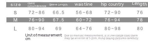 1. Choisissez la taille la plus grande si votre taille est entre deux tailles. Veuillez prévoir des différences de 2 à 3 cm en raison de la mesure manuelle.