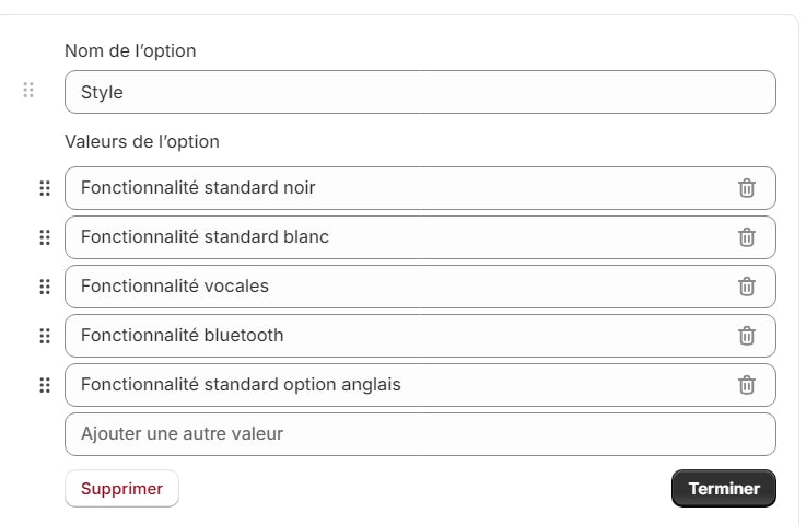 Fonctionnalité standard :