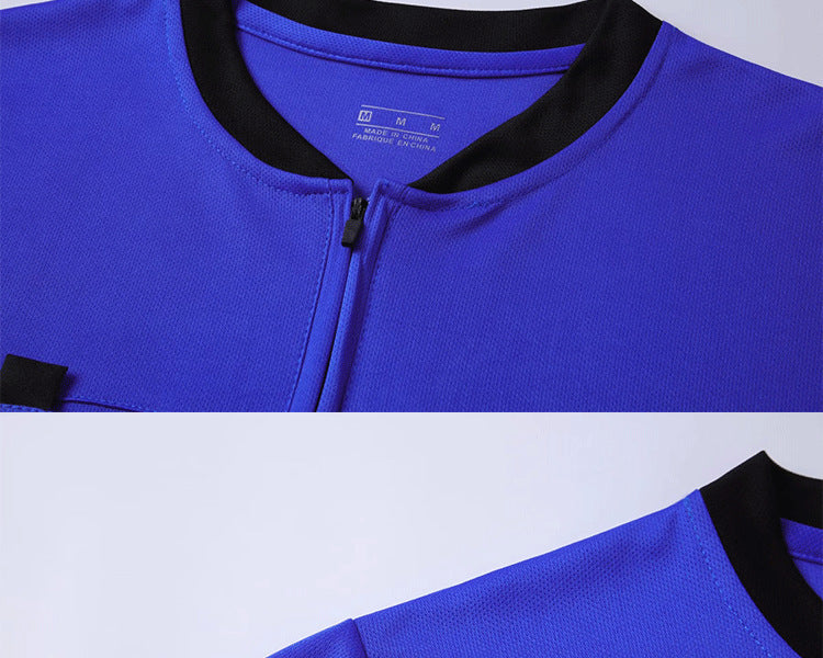 Imaginez-vous au centre du terrain, sous les projecteurs, entouré d'une équipe et d'un public qui comptent sur votre jugement. Chaque sifflet, chaque décision repose sur votre confiance et votre autorité. Et quoi de mieux pour affirmer cette présence qu'une combinaison qui incarne professionnalisme, confort et style ? Découvrez notre combinaison de vêtements d’arbitre de match de football, conçue pour répondre aux exigences du jeu, tout en vous offrant une allure impeccable. Avec elle, chaque décision devient plus qu’un simple appel : c’est une déclaration de maîtrise et de professionnalisme.