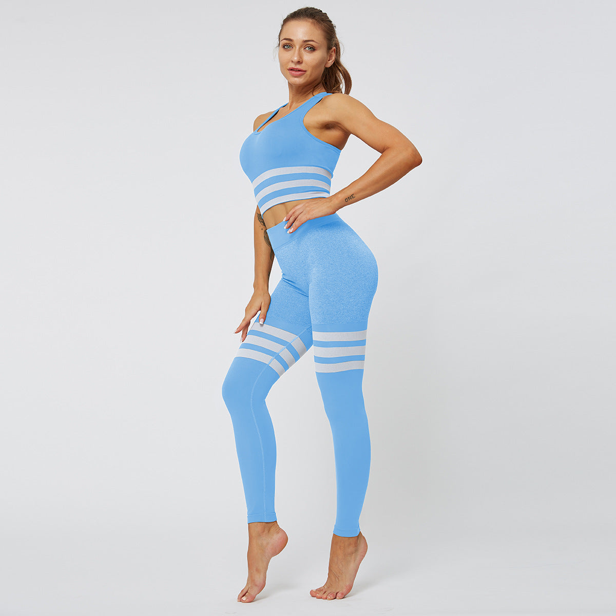 La combinaison deux pièces rayée sans coutures à taille haute allie innovation et esthétique pour sublimer chaque mouvement. Conçue spécialement pour le fitness, le yoga et vos séances de sport intensives, elle épouse parfaitement vos courbes grâce à une confection minutieuse en tissu sans coutures. Offrez-vous une expérience d’entraînement sans friction, où le confort rencontre la performance.